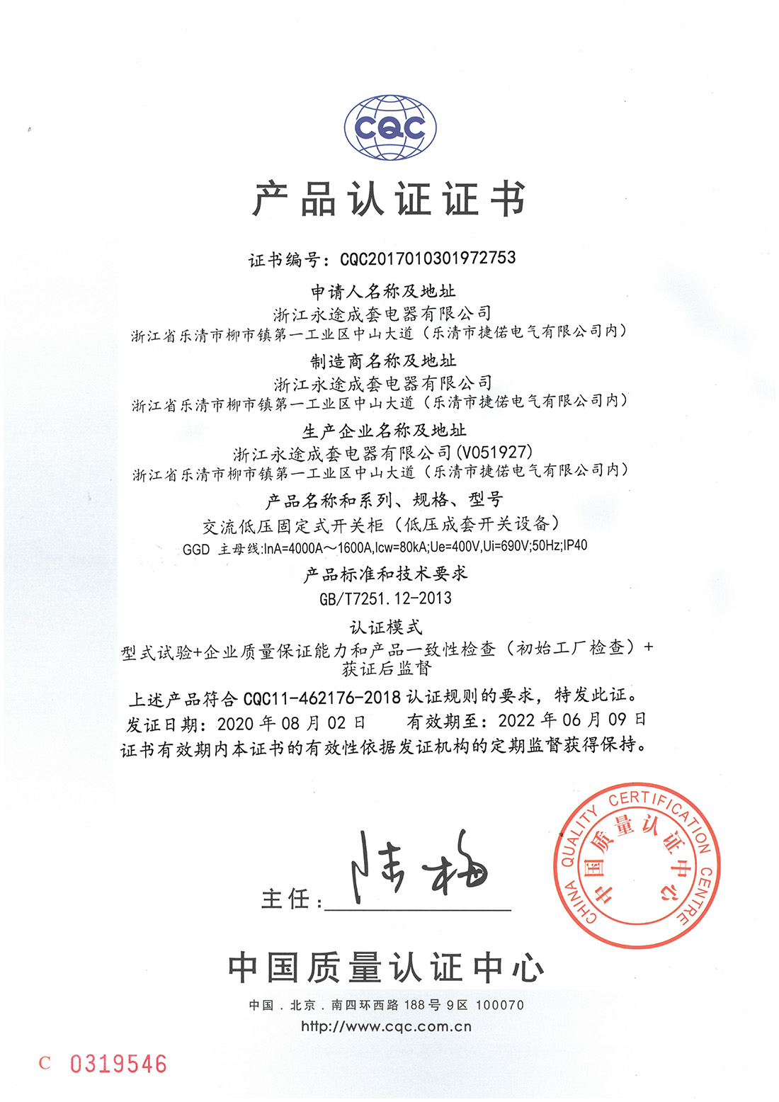 產(chǎn)品認(rèn)證證書(shū) GGD