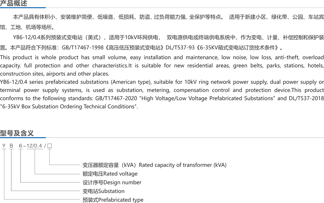 YB6-12/0.4 預(yù)裝式變電站(美式)