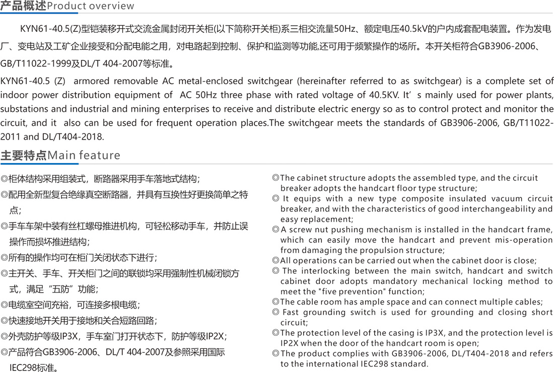 KYN61-40.5 鎧裝移開式交流金屬封閉開關(guān)設(shè)備