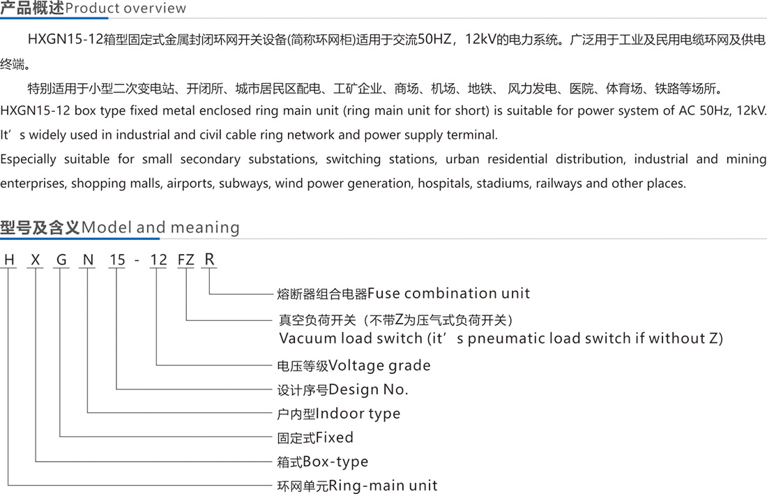 HXGN15-12 箱型固定式金屬封閉環(huán)網(wǎng)開關(guān)設備
