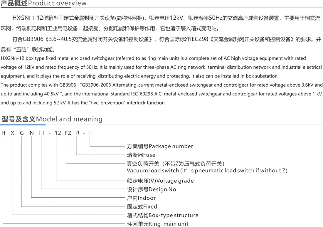HXGN□-12 箱型固定式金屬封閉環(huán)網(wǎng)開關(guān)設(shè)備